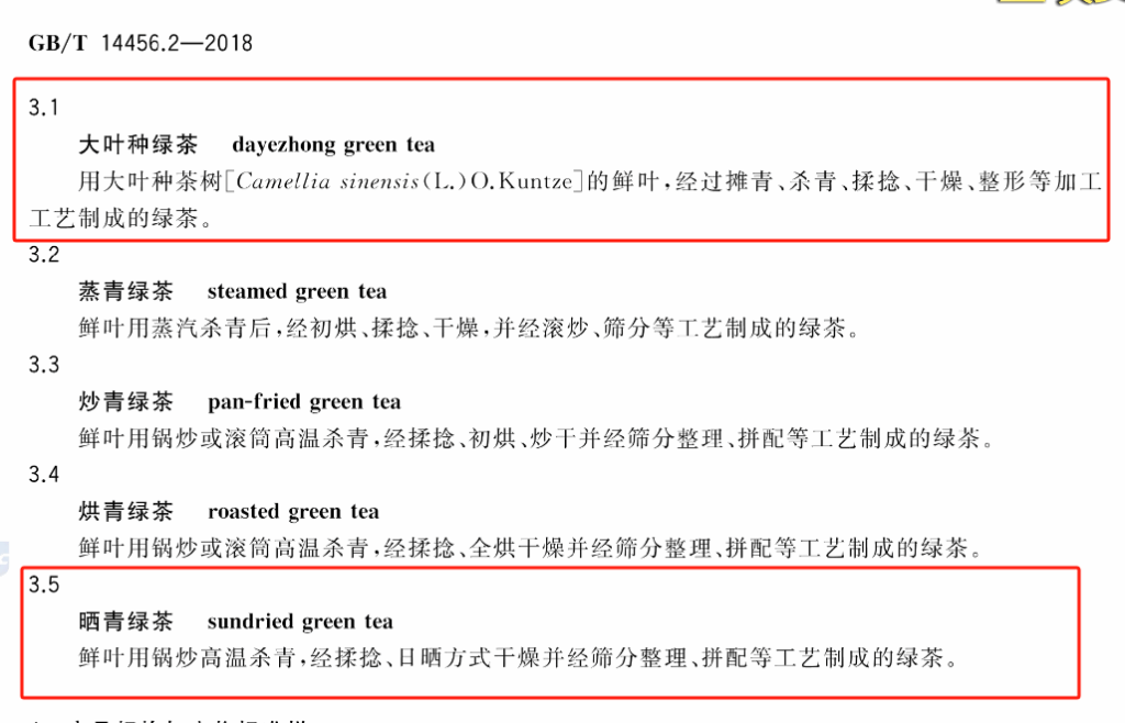 以下是大叶种绿茶和晒青绿茶的国标: