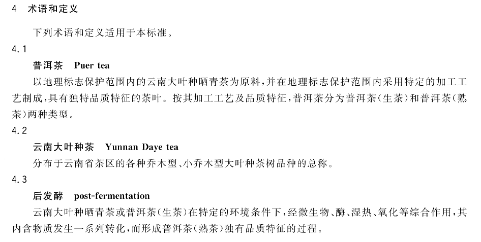 首先我们来看一下2008年发布,2008年12月1日执行的GB/T 22111-2008的国标中对普洱茶的定义。